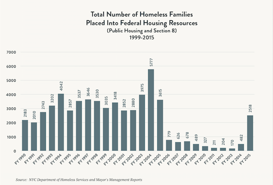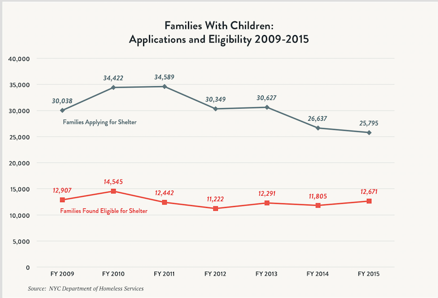 - City efforts are having an effect for homeless families: Permanent housing placements for homeless families soared in FY2015 and the number of families applying for shelter declined, due in part to increased homelessness prevention programs, like increased legal services and eviction prevention efforts.