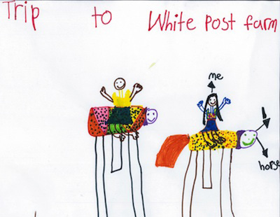 I had fun last week because it was Green Thumbs Up Week. On Monday we planted flowers in our personal pots. On Tuesday we made a life-sized tree out of construction paper. We did a science project on Wednesday and mixed together oil and water with dish soap. Thursday was a “delicious” day. We made “dirt” dessert with ice cream, crushed oreos and gummy worms. It really looked like dirt, but tasted SO good! Friday was so fun. We went to White Post Farms. I rode the pony and fed the animals.