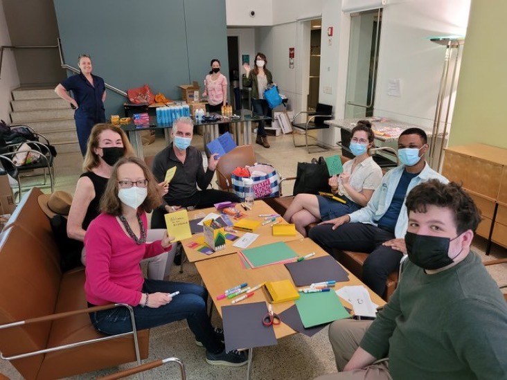 Midtown Open Hearts members and supporters create welcome kits and cards for residents of the Park Savoy shelter.