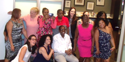 Posted on July 23, 2013 by SARAH MURPHY On Wednesday, July 18th First Step staff and supporters gathered with the family and friends of graduates to celebrate the graduation of classes 116 and 117 – and to acknowledge the incredible effort, perseverance, and sacrifice it took for graduates to make it to this milestone. Everyone in attendance was treated to inspiring speeches from Andrew Barnes, the First Step Computer Instructor, and Austin Fremont, one of First Step’s most amazing volunteers. Andrew praised the graduates for their hard fought accomplishments and stressed the importance of maintaining the mindset that allowed them to complete First Step by setting new expectations for themselves that build on their achievements. Recognizing that so many First Step graduates are mothers and the powerful impact of a mother’s advice, Austin shared a touching story about how her own mother gave her rules to live by that still guide her today and which we can all benefit from – show up, pay attention, tell the truth, try your best, and do not get too attached to the outcome. Of course, the highlight of every First Step graduation is hearing directly from the graduates themselves. Although we cannot accurately capture the emotion and the sincerity of the feelings expressed, here is some of what was said by the many graduates through the smiles and the tears in their own words: “In First Step I learned the most about myself, my truest self.” “First Step staff helped me through a rough time, they opened a door I didn’t know was there. I tell everyone I meet about First Step!” “There were times when I wanted to give up, but you wouldn’t let me – the warmth was amazing.” “First Step was like a family to me. They taught me to be confident in myself. I never thought at my age that I could get a certificate, but ‘I can’t’ is no longer part of me. Today I can hold my head high.” “I’ve been working with First Step and the Coalition since I graduated, but even if I wasn’t I would volunteer my time because you have a piece of my heart forever.” “I hate to leave because I love you all…I didn’t fully know why I was coming before I got here, but I came anyway and I got it!” “When I came here I knew I was home. We did it!” Guest speaker and volunteer, Austin Fremont A crowd of family and friends cheer for the graduates. A group of graduates and First Step staff. More graduates excited for their night. Life-long friendships are often started through First Step.