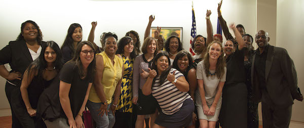 Posted on July 24, 2015 by Nicole Edine Last week marked the beginning of a new chapter for 26 women in the Coalition’s First Step Job Training Program. After 14 weeks of intensive computer training, professional internships, resume writing, mock interviews and job applications, First Step students came together with close family, friends and Coalition staff to celebrate their accomplishments – and look to the future. Equipped with the skills and the confidence to succeed, these amazing women are ready to take on the working world. The highlight of graduation was the uplifting speech from the evening’s Graduate Speaker, Faith. Faith described her initial reluctance to enroll in First Step – she was anxious at the thought of leaving her two young daughters in childcare all day long for a program she didn’t know much about. But after signing up, Faith was motivated and inspired by the diversity and sisterhood of her classmates and the steadfast support of the First Step staff: “From the onset, the staff were amazing. They don’t look down on you… you can tell from their initial interaction that they really care about your future and really want you to succeed at what you’re doing and go forth in life.” Faith (Right) celebrates with fellow graduates Not only did First Step help Faith find full-time employment – through the program, she was able to discover newfound self-respect. “I started off doing it for my girls because they needed a role model – they needed a better life,” she continued, “but as I went through the program I realized, I was doing it for myself. I wanted more. And I got it.” As each graduate received her certificate, the message to family and friends rang out loud and clear: First Step had changed their lives for the better and there was no stopping them now! “Classes 128 and 129, raise those certificates – we did it!” Classes 128 and 129 celebrate with First Step staff First Step would not be possible without the many individuals and organizations that sponsor, volunteer and provide internships for our students. We are grateful for their continued support. Learn more about the First Step Job Training Program here and hear from First Step graduate Valerie, who overcame illness, a lost job and homelessness to achieve independence: