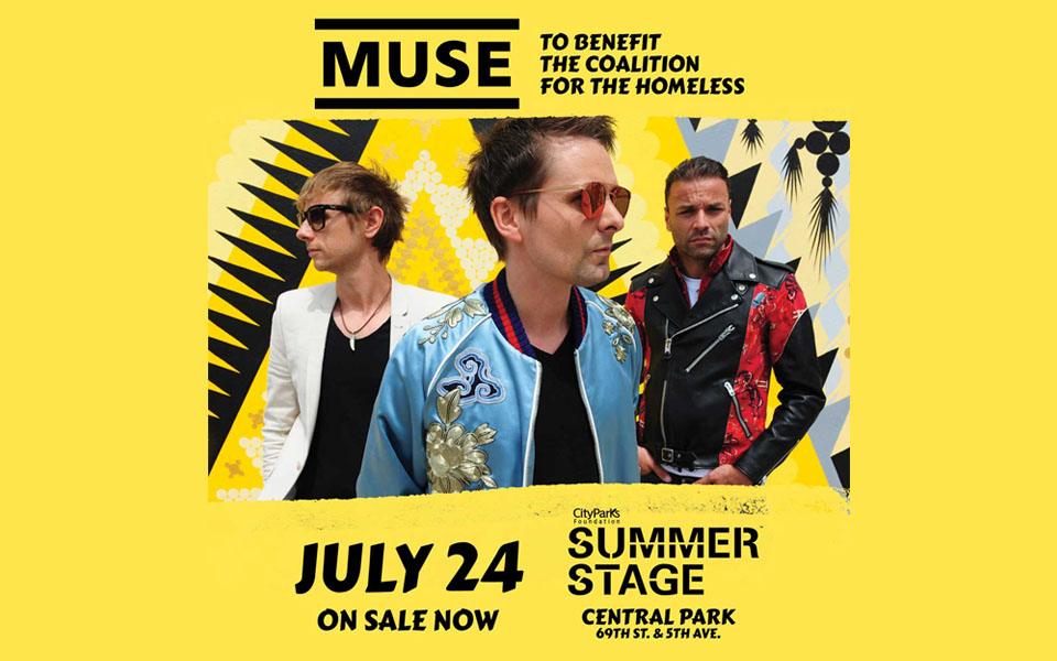Grammy® Award-winning rock band MUSE today announced it would perform a special concert on July 24, 2017 at City Parks Foundation’s SummerStage in Central Park to benefit the Coalition for the Homeless. A ticket presale for the band’s fanclub will launch on Wednesday, June 28th at 10 AM local time, SummerStage presale at 12 NOON and the public on sale for the benefit will begin Friday, June 30th, 2017 at 10 AM.