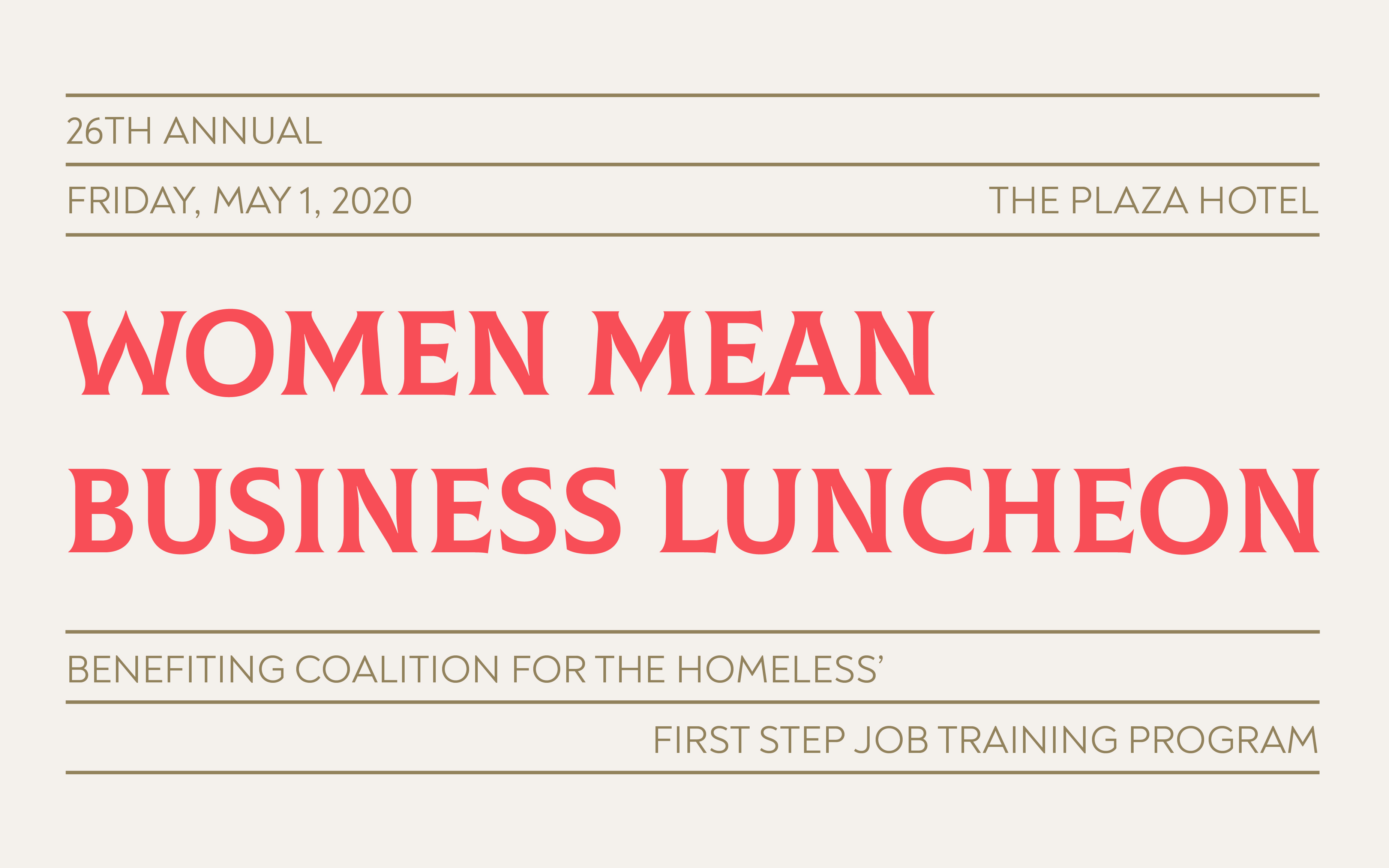Each year, more than 400 of New York City’s most accomplished and engaged leaders gather to attend the Women Mean Business Luncheon, which supports the Coalition’s First Step Job Training Program. The event features program graduates sharing their moving stories and experiences. Past events have also featured guest speakers including Arianna Huffington, Hillary Clinton, Christine Quinn, Anna Quindlen, Ashley Graham, Darlene Love, First Lady of New York City Chirlane McCray and Dari Alexander.