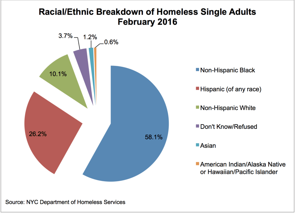 Homeless single adults in New York are not a homogeneous population, but some demographic groups are more likely to be affected by homelessness: