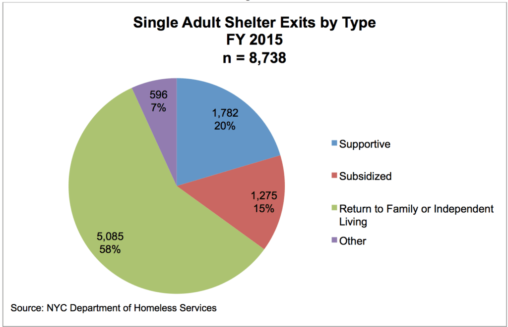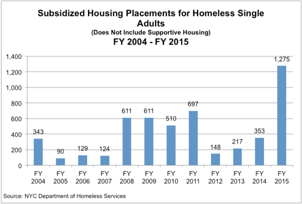 New York City has correctly increased the number of housing subsidies available to help single adults move out of City shelters and into permanent housing. But the rising demand for shelter and stubbornly high homeless shelter census underscore the urgent need to bring the breadth, depth and speed of government housing-based solutions to a scale sufficient to meet the crisis.