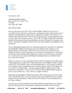 Mayor Adams Rt to Shelter Sign-on November 2023
