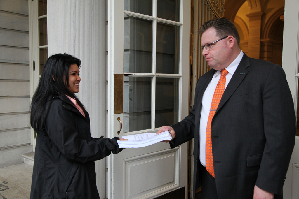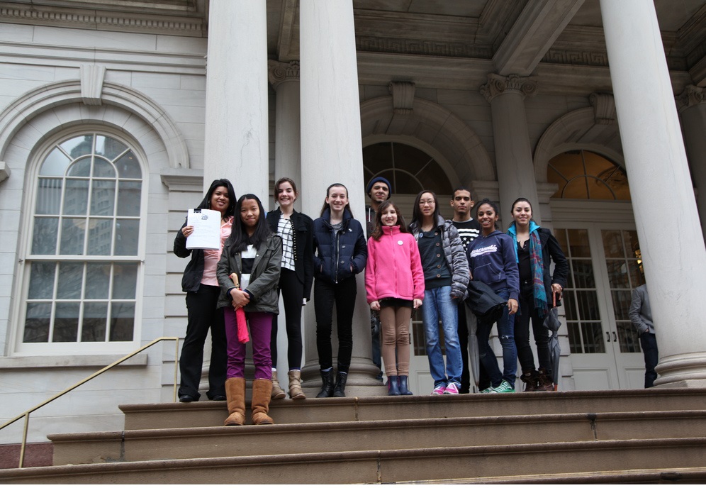 Posted on December 23, 2013 by GABRIELA SANDOVAL REQUENA Outraged over the plight of the more than 20,000 homeless kids residing in emergency shelter each night, a group of concerned New York City schoolchildren collected over 10,000 signatures on a petition to outgoing Mayor Bloomberg. They delivered the petition at City Hall today, hopeful that the next Mayor will take a more rational and humane approach to ending family and child homelessness after the crisis skyrocketed during the Bloomberg years. “This issue is personal to me. I used to be one of the 22,000 homeless children and I don’t want to see other people go through what I went through,” said Avonna Zheng, a 12th grader at Murry Bergtraum High School for Business Careers. “Without stability, there is no opportunity.” “Many people take for granted that they have a warm home to live in, but 22,000 kids don’t,” said Liana Chow, a 9th grader at Stuyvesant High School. “This is not their fault, and it is everyone’s job to help them. Hundreds of kids I know signed these petitions because we want all NYC kids to have homes, which will give them the stability they need to succeed in school.” The petition explains that “a shelter is not a home” and urges the Mayor to “give homeless families a little help with paying rent” so that “their kids will be able to grow up in real homes instead of scary shelters, and have a chance for the same opportunities as everyone else.” “We’re delivering this petition to Mayor Bloomberg because 10,000 school kids throughout New York City want him to know that we care about the 22,000 kids who have to sleep in a homeless shelter tonight,” said Rebecca Berke, a 12-year old at City and Country School. “We know that the story of Dasani that was in the NY Times last week is not the only story, and hope that all these school kids who signed the petition will be heard because we think every child in NYC deserves a home.” According to City data, there are now more than 52,000 homeless people residing each night in the municipal shelter system, up 69% since Bloomberg took office. This is the largest number of homeless people in NYC since the City began keeping records more than three decades ago. This record-high shelter population includes more than 22,000 homeless children. And the number of homeless families has increased by 80% since Bloomberg took office. The next Mayor has pledged to address this problem.