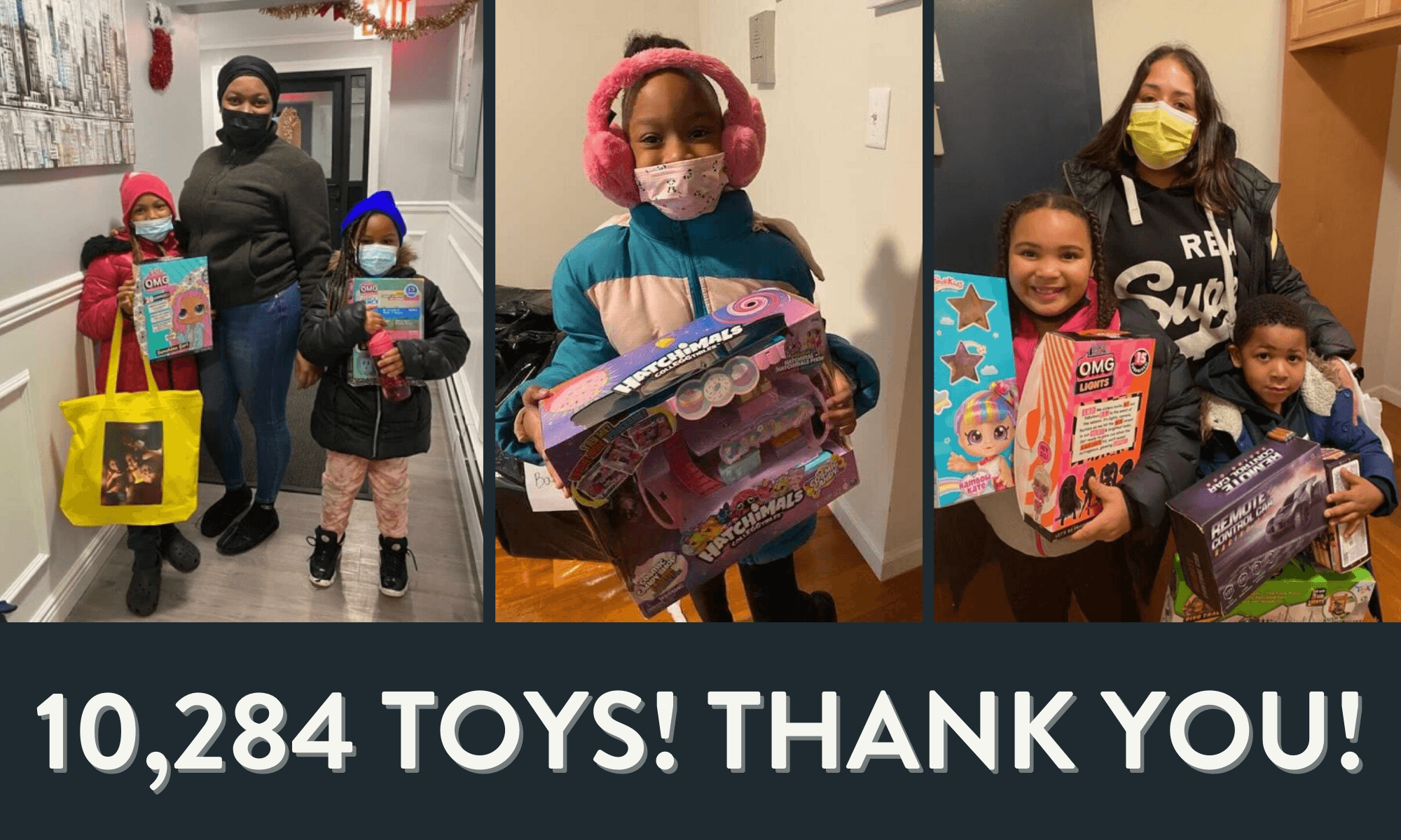 Thanks to you, we gave away more than 10,000 toys this holiday season to homeless kids in 50 NYC shelters!