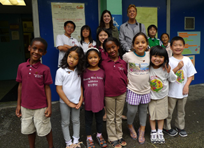 Posted on July 5, 2012 by SARAH MURPHY Students at Shuang Wen School participated in a Penny Harvest fundraising effort to benefit the Coalition for the Homeless. Thanks to their dedication and hard work, they collected over $300 in coins to benefit the Coalition. The student Penny Harvest leaders (pictured) proudly wore their penny label pins and presented the Coalition with a check and flowers during the monthly Parents’ Association meeting. These inspiring young students spoke movingly about choosing an organization to end homelessness and the importance of giving back. Parent Natalie Cash spearheaded this effort and is deeply proud of all the students’ participation.