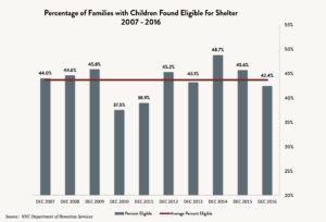 NEW YORK, NY – The Coalition for the Homeless today released its State of the Homeless 2017, a comprehensive look at homelessness in New York City. The report finds that policy failures by the City and State have exacerbated the decades-long homelessness crisis stemming from New York’s severe lack of affordable housing and extreme income inequality. More than 62,000 men, women, and children currently sleep in New York City shelters each night, representing a 79 percent increase in the demand for shelter over the past decade.
