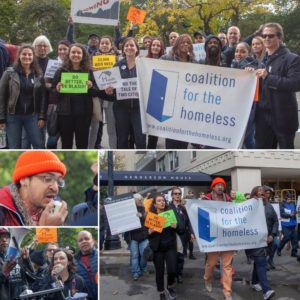 Posted on October 25, 2018 by Jacquelyn Simone On Wednesday, more than 300 New Yorkers – many of whom are currently experiencing homelessness – marched to Gracie Mansion to demand that Mayor de Blasio tackle record homelessness by creating more truly affordable permanent housing. The march was the latest action by the House Our Future NY campaign urging the Mayor to set aside 10 percent of his 300,000-unit Housing New York 2.0 plan for homeless New Yorkers – 30,000 units, with 24,000 units to be created through new construction. The House Our Future NY campaign, which the Coalition for the Homeless launched earlier this year, has rapidly gained momentum as more New Yorkers recognize the urgent need for the Mayor to fully utilize permanent housing resources to address this historic crisis. The campaign has won endorsements from 61 partner organizations and 38 elected officials, and garnered significant media attention. Additionally, more than 2,300 concerned New Yorkers have signed a petition that was delivered to the Mayor at Wednesday’s march. As the Coalition’s Policy Director Giselle Routhier explained: “Mayor de Blasio’s current affordable housing plan is wholly inadequate and fails to meet the scale of the crisis. Of the 300,000 units of housing to be created or preserved by the plan, a mere 5 percent will be set aside for homeless households at a time when we are hitting new records almost nightly for the number of homeless single adults, while homelessness among families and children remains persistently and unacceptably high,” said Giselle Routhier, Policy Director at Coalition of the Homeless. “The depth of this crisis requires that the Mayor use all the tools he has available – including his affordable housing plan – to finally start reducing the number of our neighbors forced to turn to shelters or the streets.” Marcia Kramer reported on the march and rally for CBS2. Visit the website to watch the video. “I am presently homeless and I need the mayor to hear us,” Felix Guzman said. “We are faced with a problem that has divided the whole city between the haves and the have nots.” “The homeless community is sick and tired of these ridiculous things that the mayor is doing,” said Deborah Dickerson of the advocacy group Picture The Homeless. “You live in this mansion right here and your children are provided for. Our children are in the shelter system sleeping and not getting enough to eat.” “I have been homeless now for four years. I am constantly searching for housing,” said Charisma White of the group Urban Pathways. The homeless and advocacy groups say there is no excuse in a city like New York for people to be sleeping on the street or in train stations. They want the mayor to commit to building 30,000 units of affordable housing, 24,000 units through new construction. “Everybody else is on board with this campaign. We’ve got 59 organizations, the public advocate, the comptroller, four borough presidents, 26 council members. The only person we’re missing is the mayor,” said Giselle Routhier of the Coalition for the Homeless. “The mayor says he’s comfortable with his approach, but his approach will reduce homelessness by 3,500 people in five years. That’s not enough. We have to make the mayor uncomfortable in his approach — 62,000 homeless people are not comfortable,” added Marc Greenberg, the executive director of the Interfaith Assembly on Homelessness.